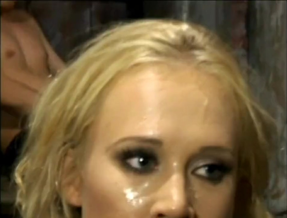 A szőke szexbomba arcának teli lőtték a száját és az arcocskáját a kanos pasik, miközben édesen nyögött a gyönyörtől.