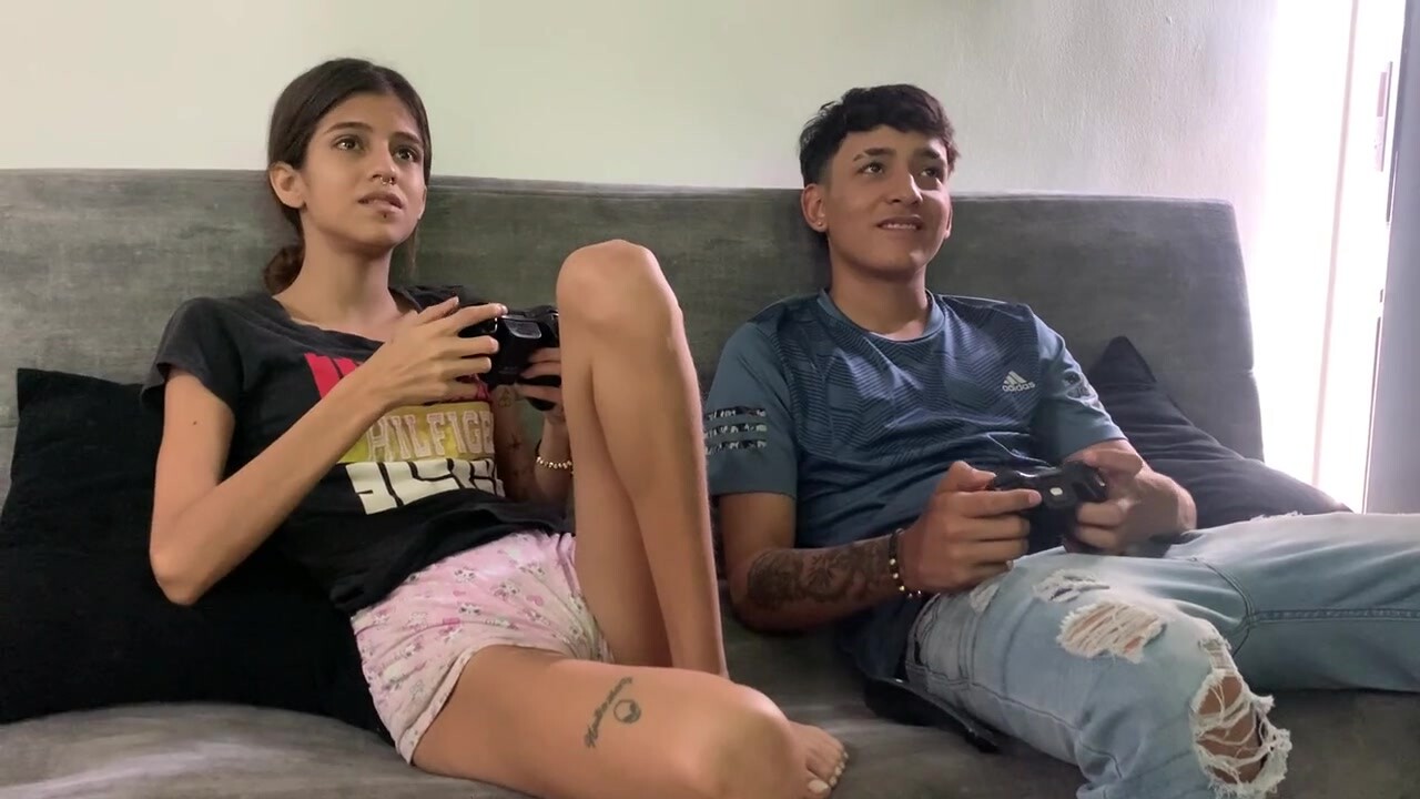 Videójátékozás közben ráharapott a mostohabátyója farkára a sovány latinamerikai lány